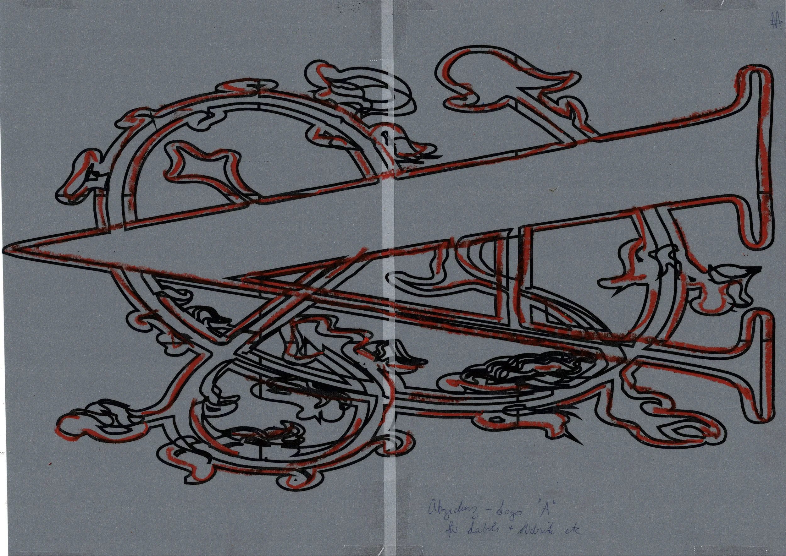 The Akzidenz Logo draws inspiration from gothic books, particularly their signature fleuronnée initials at the beginning of chapters. Much like a fleuronnée embellishes a page, the Akzidenz Logo serves as the brand's starting point, defining itself through a fusion of gothic imagery and digital distortion.